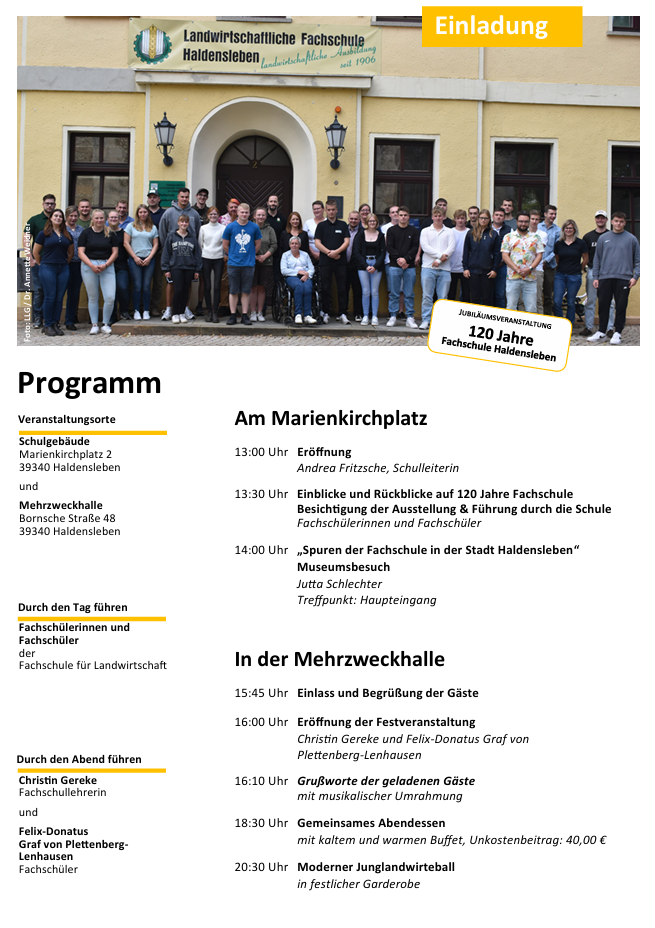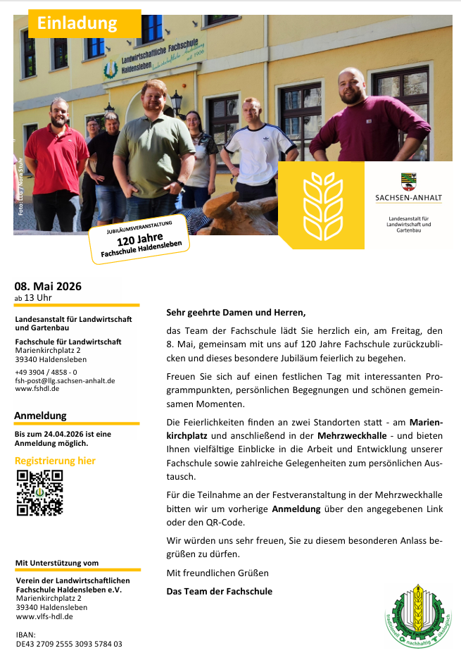 Wir laden alle Interessierten & Freunde der Fachschule für Landwirtschaft Haldensleben ein.
